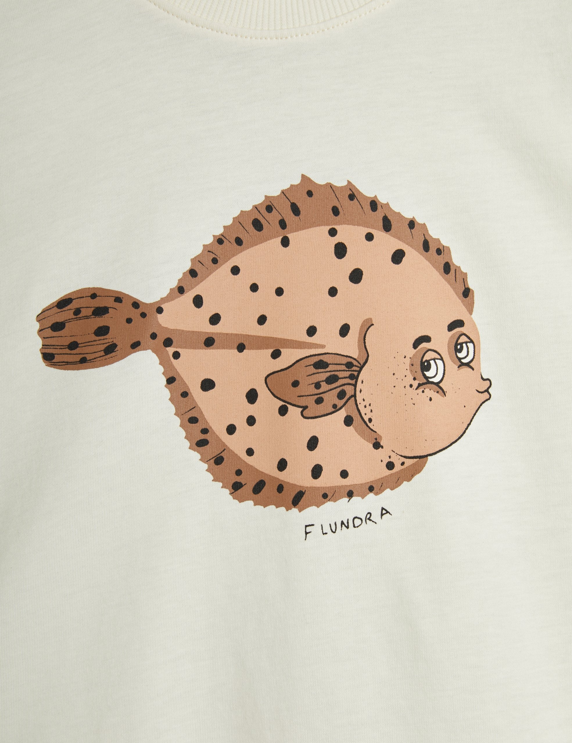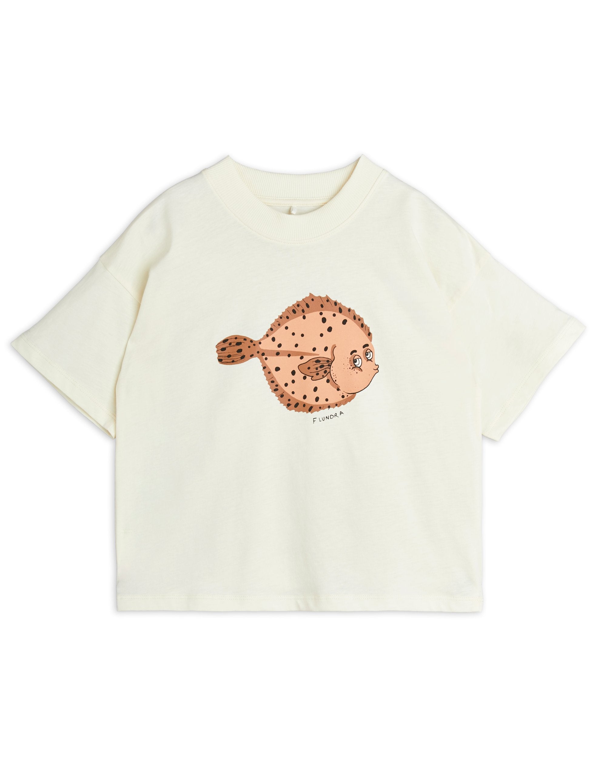 Das Mini Rodini T-Shirt mit Flundra-Print besticht durch seine weiche Baumwollqualität und die trendige Farbe Off-White. Der verspielte Flundra-Print verleiht dem Shirt einen einzigartigen Look, der ideal für Kinder ist, die Mode mit Spaß kombinieren möchten.