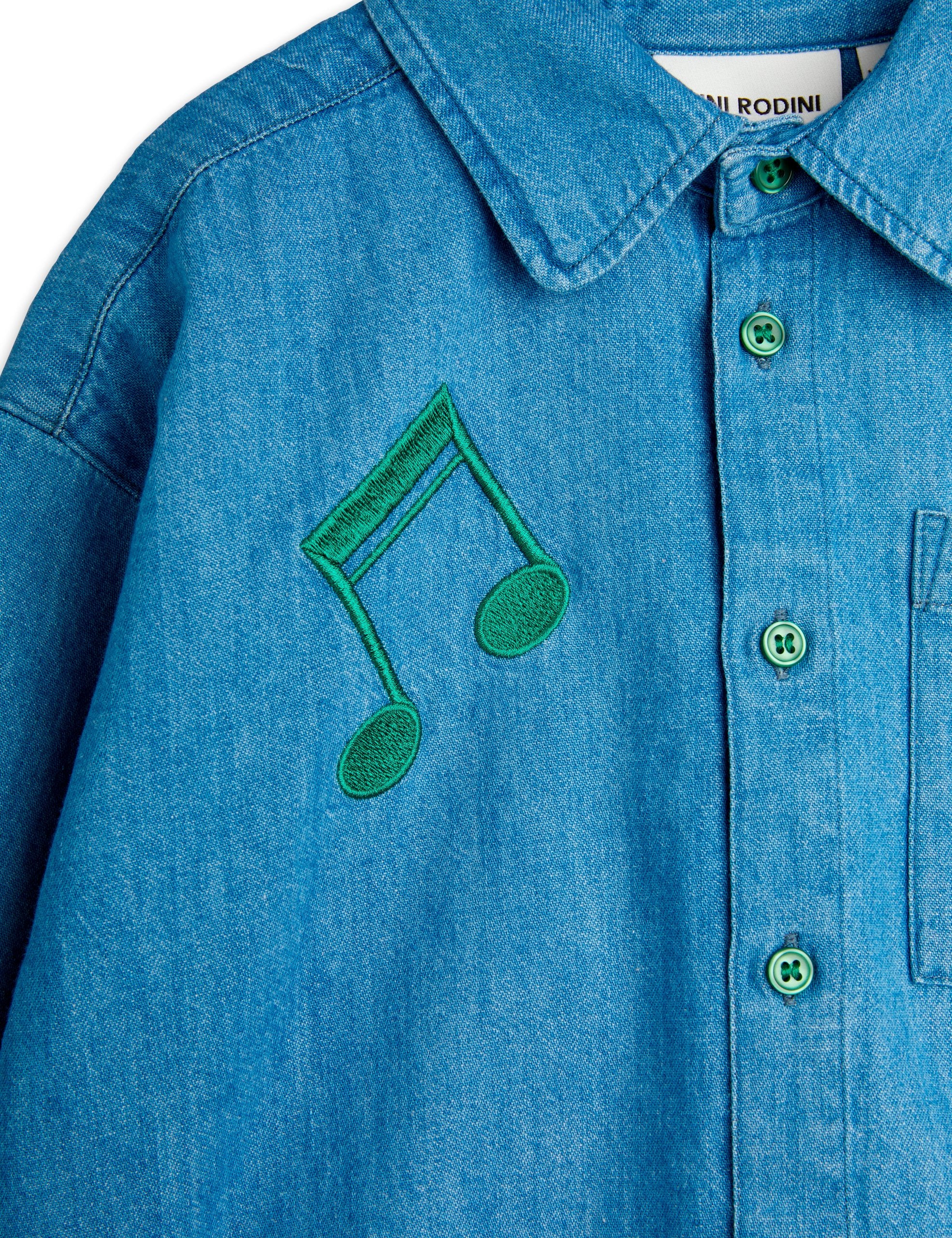 Mit diesem lässigen Hemd aus leichtem Denim mit Notenschlüssen Stickerei von Mini Rodini bist du immer im Takt. Die Stickerei verleiht dem Hemd eine verspielte Note und macht es zum perfekten Begleiter für coole Kids. Let's rock the playground!