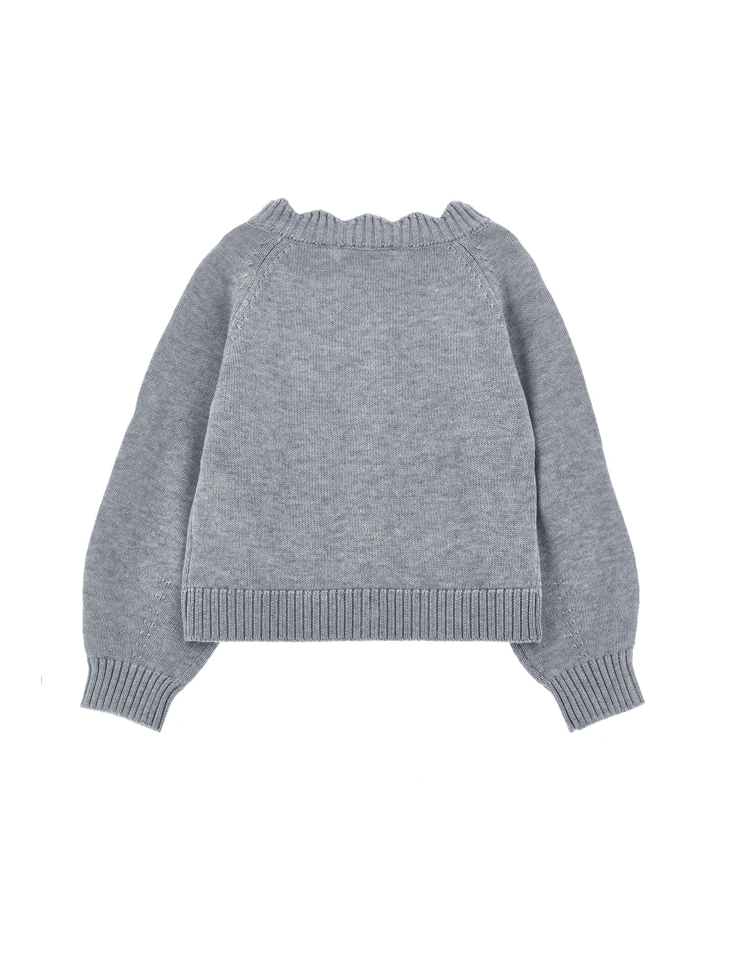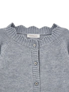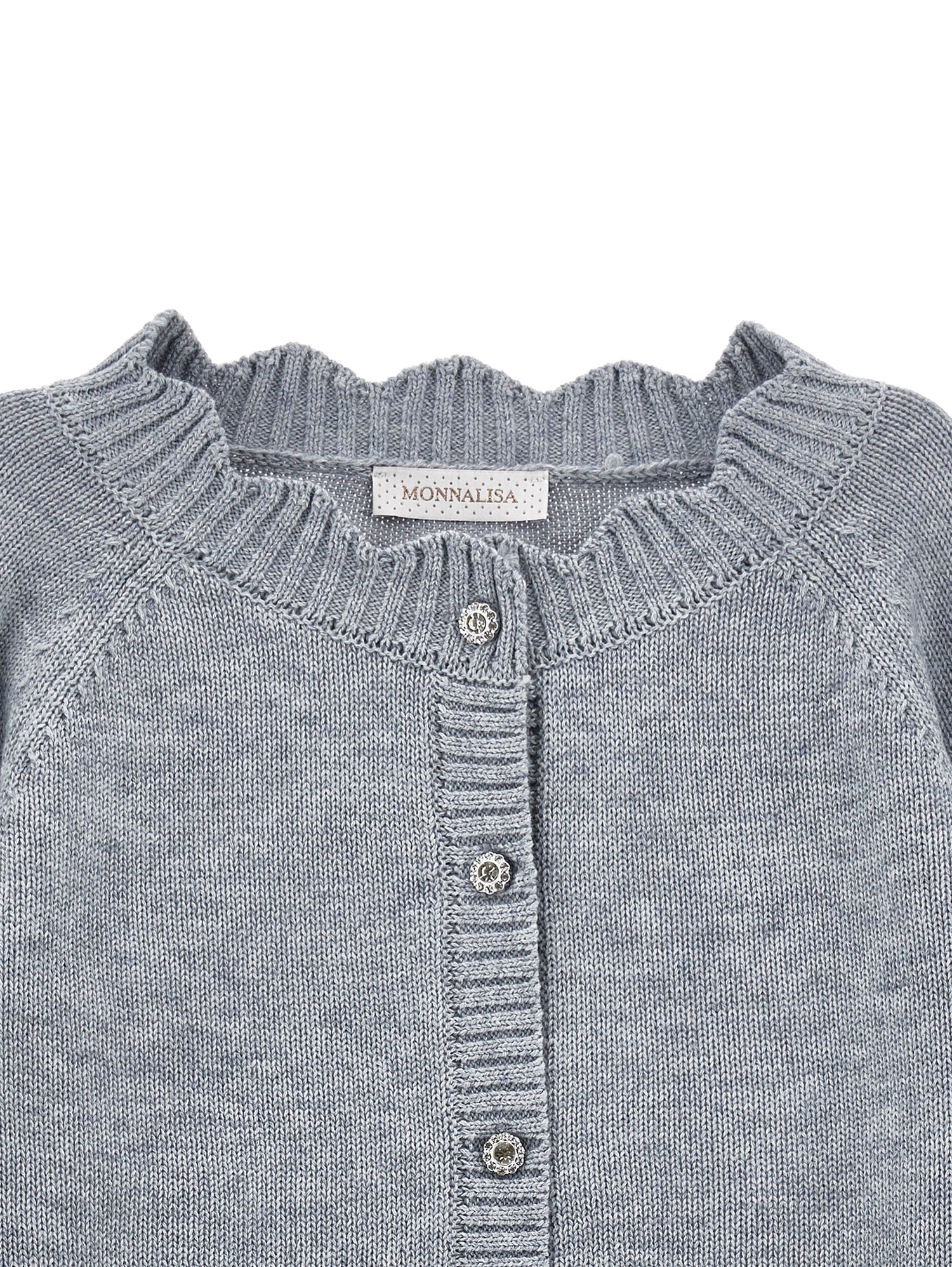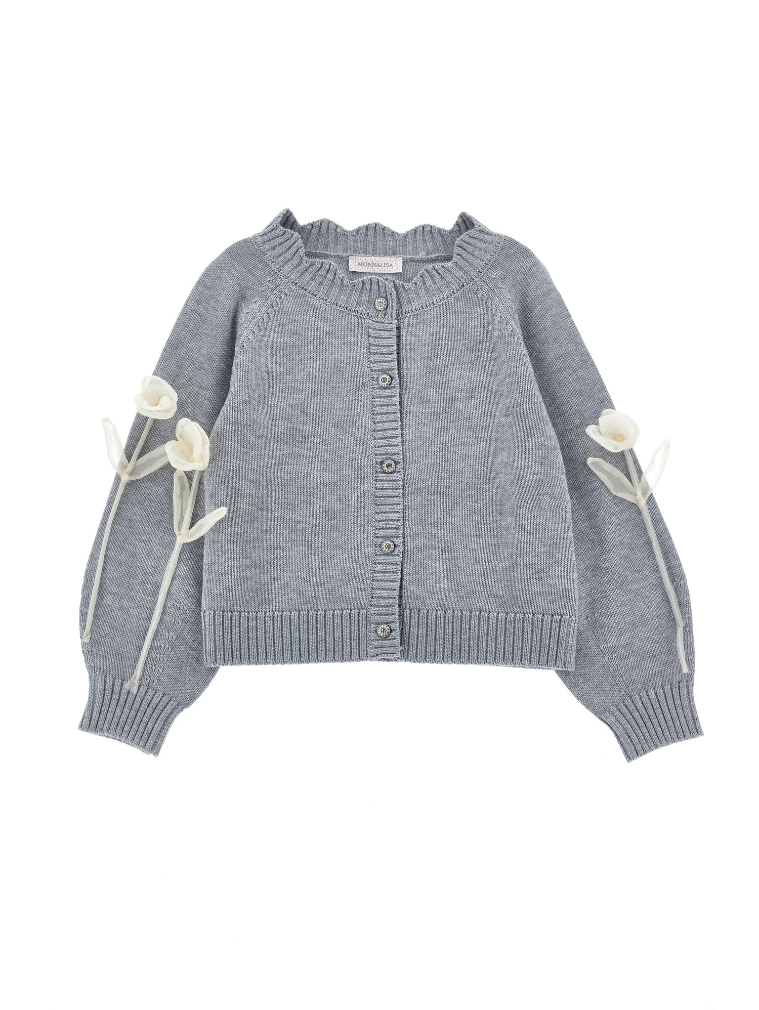Dieser Monnalisa Cardigan in grau ist ein eleganter Blickfang mit zarten Details. Die Schmuckknöpfe an der Leiste verleihen dem Cardigan eine exklusive Note und die mit Blüten verzierten Ärmel erinnern an ein Kunstwerk. Perfekt für sophisticated Looks.