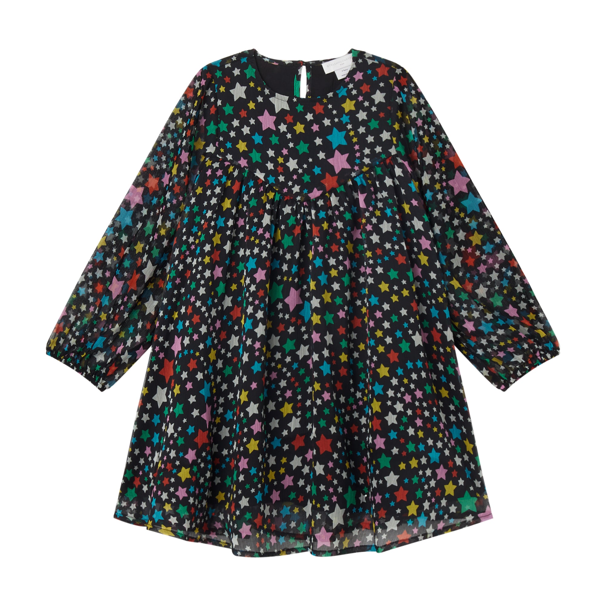 Dieses Stella McCartney Kids Woven Dress aus der neuesten Kollektion ist aus recycelten Materialien gefertigt und besticht durch seinen bunten Sternen-Print in Allover-Optik. Die weiten Ärmel und der plissierte Rock machen es zum perfekten Lieblingsstück für Ihren kleinen Schatz. Das Kleid ist bequem geschnitten, mit elastischen Rippenbündchen und einem klassischen Rundhalsausschnitt – ideal für stilbewusste Kinder, die Wert auf Nachhaltigkeit legen.