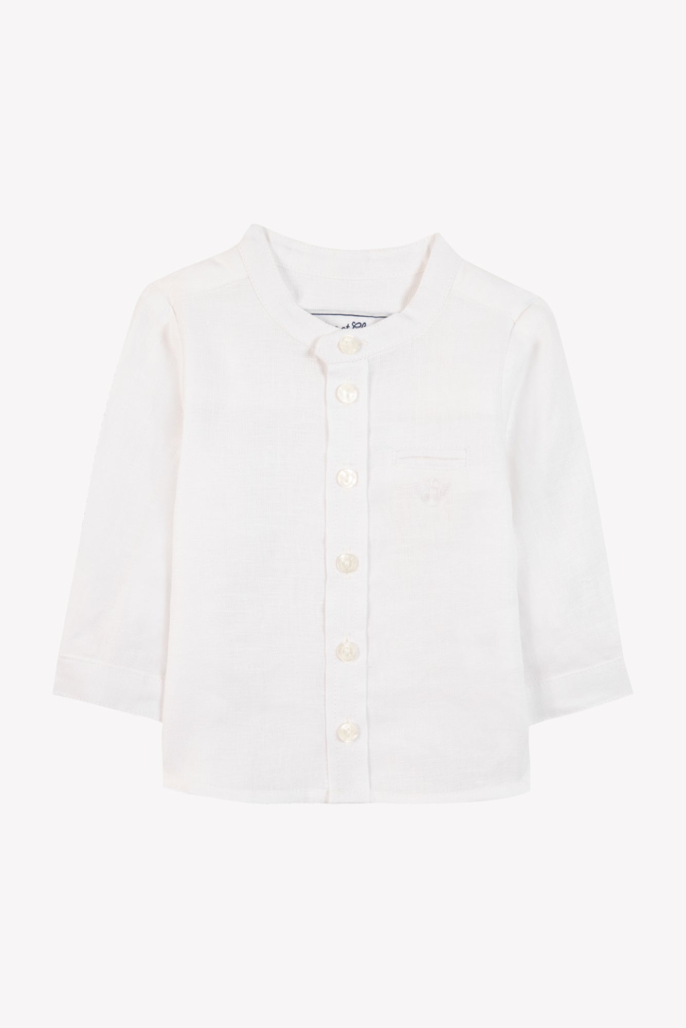 Tartine et Chocolat – Weißes Leinenhemd mit Stehkragen und langen Ärmeln