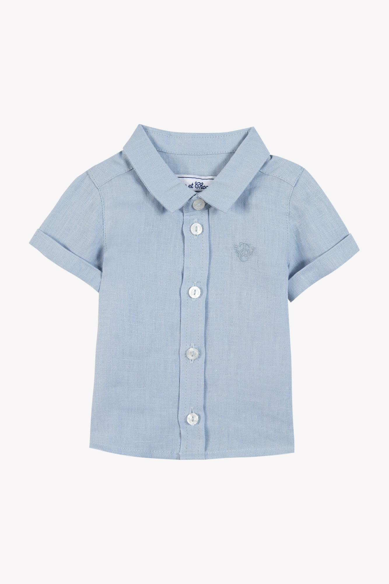 Tartine et Chocolat – Blaues Leinenhemd mit kurzen Ärmeln