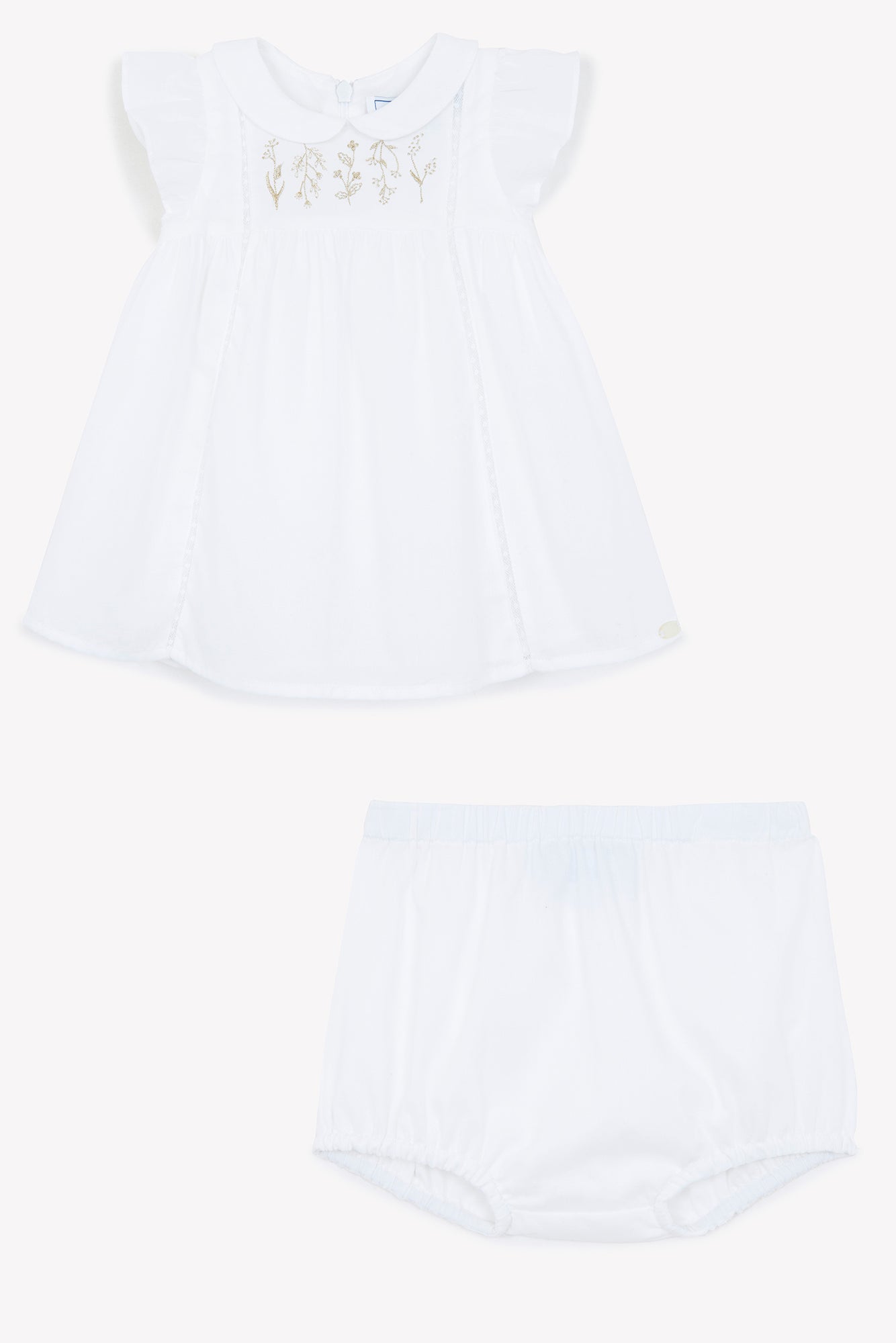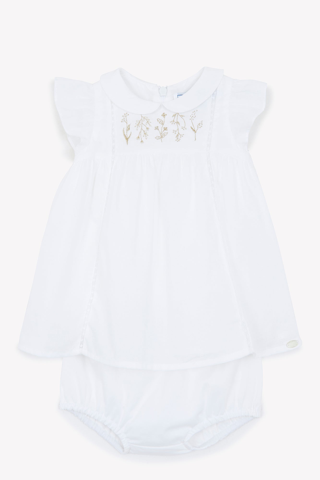 Weiß Zart besticktes Set mit Peter-Pan-Kragen & passendem Bloomers – leicht, elegant und perfekt für sonnige Tage oder besondere Anlässe.