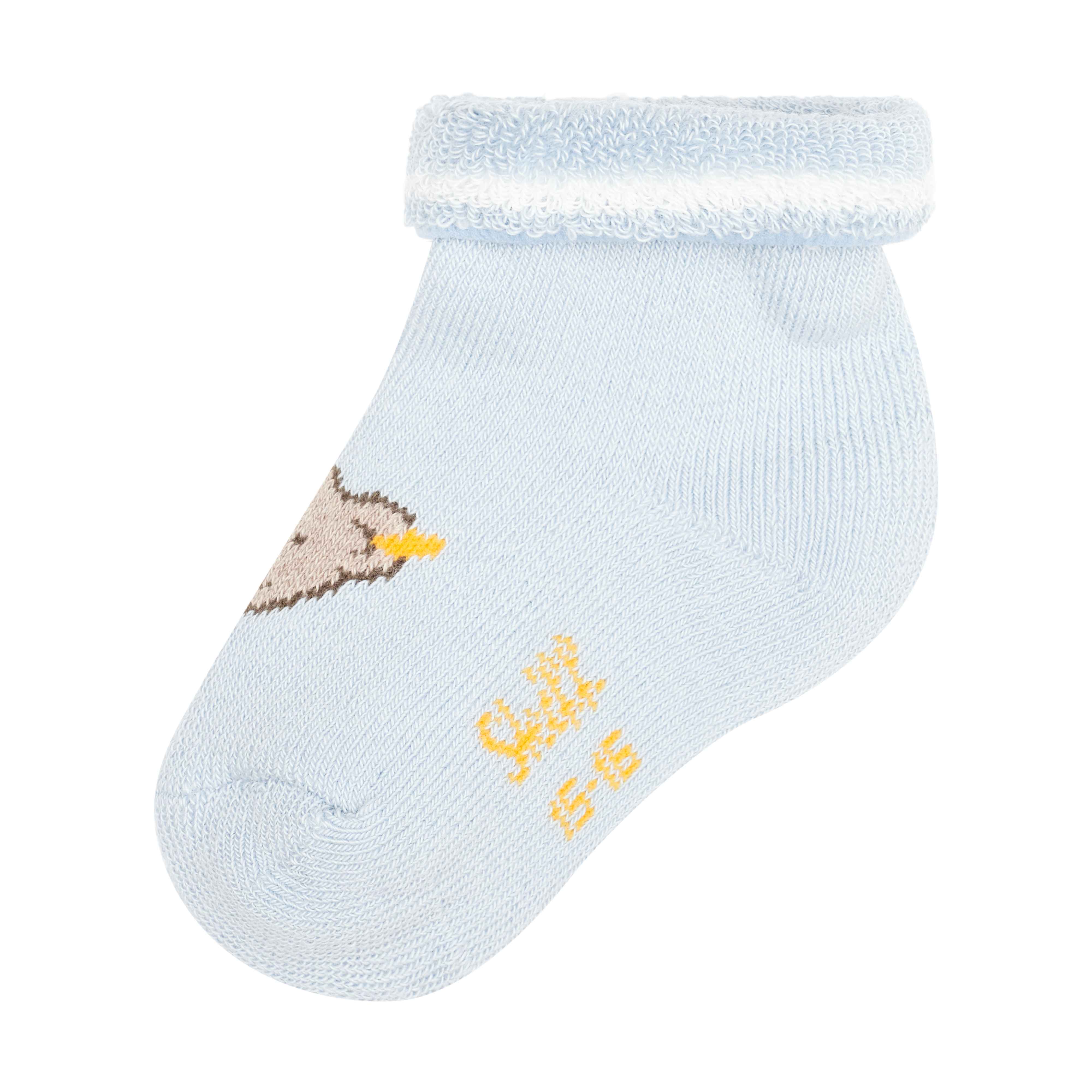 Die Steiff Babysocken in Hellblau bieten höchsten Tragekomfort für kleine Füßchen. Weicher Strick und zarte Umschläge schmiegen sich angenehm an die Haut an und sorgen für ein kuscheliges Gefühl. Die klassische Passform mit Ferse und Abnähern an den Zehen gibt genügend Raum zum Strampeln und Entdecken. Dank der zeitlosen Farbe lassen sich die Söckchen vielseitig kombinieren – ob zu Hosen, Kleidchen oder Röcken. Das liebevolle Steiff Teddybärmotiv begleitet Ihr Baby bei jedem Schritt und macht die Socken auch als Geschenk zur Geburt besonders beliebt.