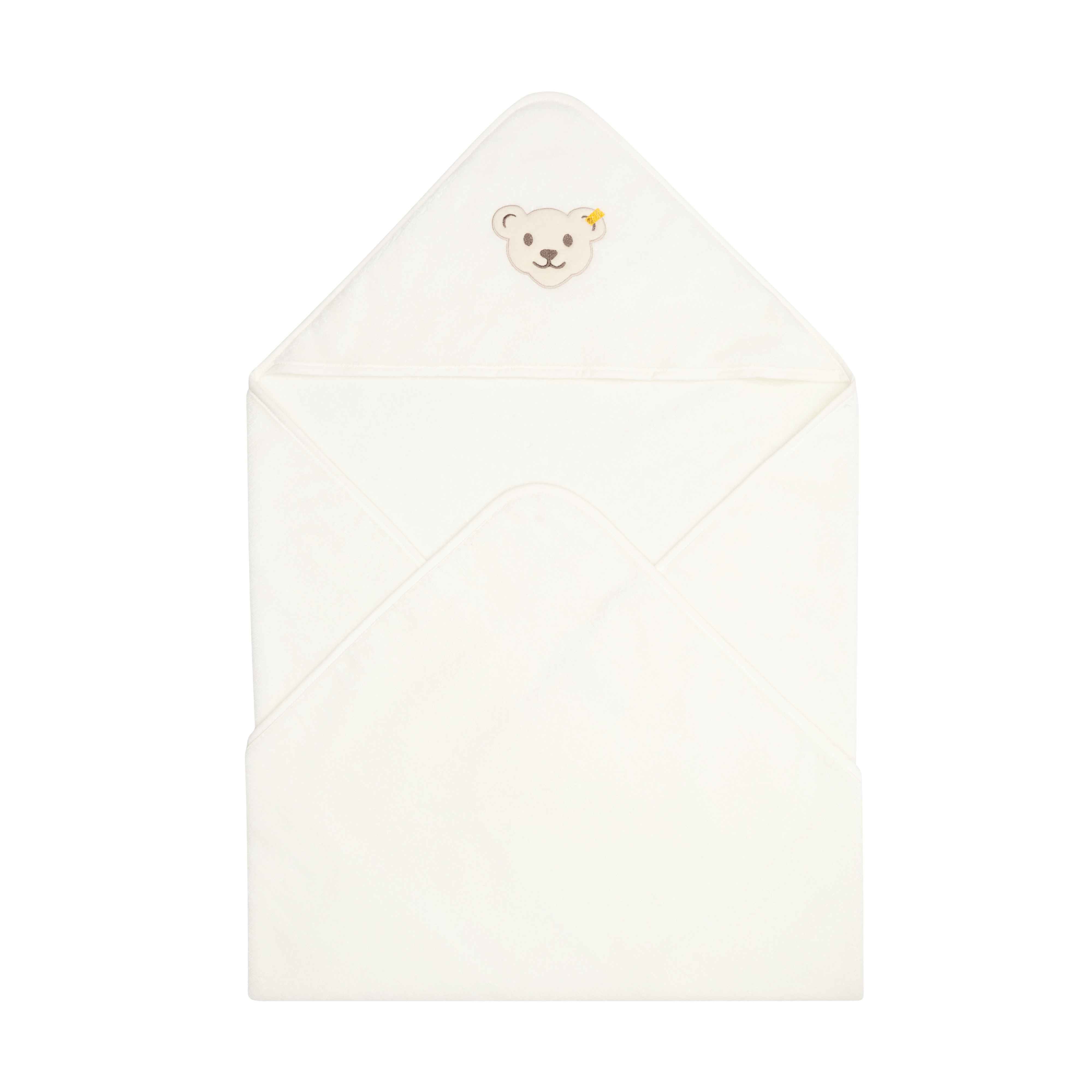 Das Steiff Badetuch mit Kapuze schenkt Babys nach dem Baden wohltuende Wärme und Geborgenheit. In zeitlosem Creme gehalten, sorgt es für ein kuscheliges Gefühl auf zarter Haut und trocknet sanft nach dem Waschen oder Schwimmen. Die Kapuze hält das Köpfchen angenehm warm und schützt vor Zugluft. Auf der Kapuze begleitet das ikonische Steiff Teddybärmotiv Ihr Kleines liebevoll durch die Badezeit. Ein praktisches Accessoire und beliebtes Geschenk zur Geburt.