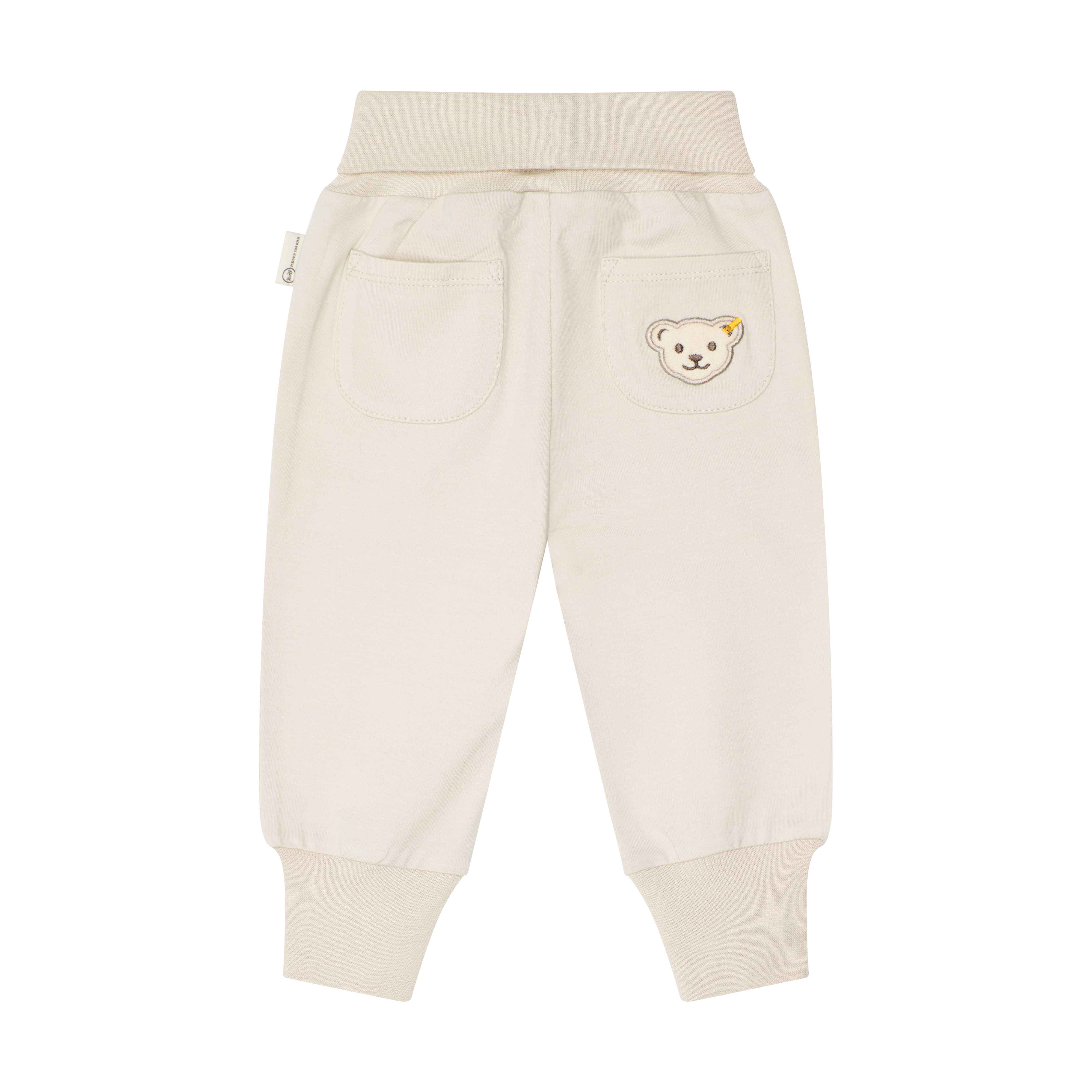 Die Steiff Jogginghose in beige gehört zur Grundausstattung kleiner Weltentdecker. Gefertigt aus weichem Jersey mit GOTS-Zertifizierung, bietet sie eine anschmiegsame Passform und viel Bewegungsfreiheit. Der sanfte Schlupfbund sorgt für hohen Tragekomfort und begleitet Kinder beim Spielen, Entspannen oder Einschlafen. Dank ihres schlichten Designs lässt sich die Hose vielseitig kombinieren – sportlich im Alltag oder auch festlicher zu besonderen Anlässen. Ein flauschiges Steiff Teddybärmotiv auf der hinteren Tasche macht den Look unverwechselbar.