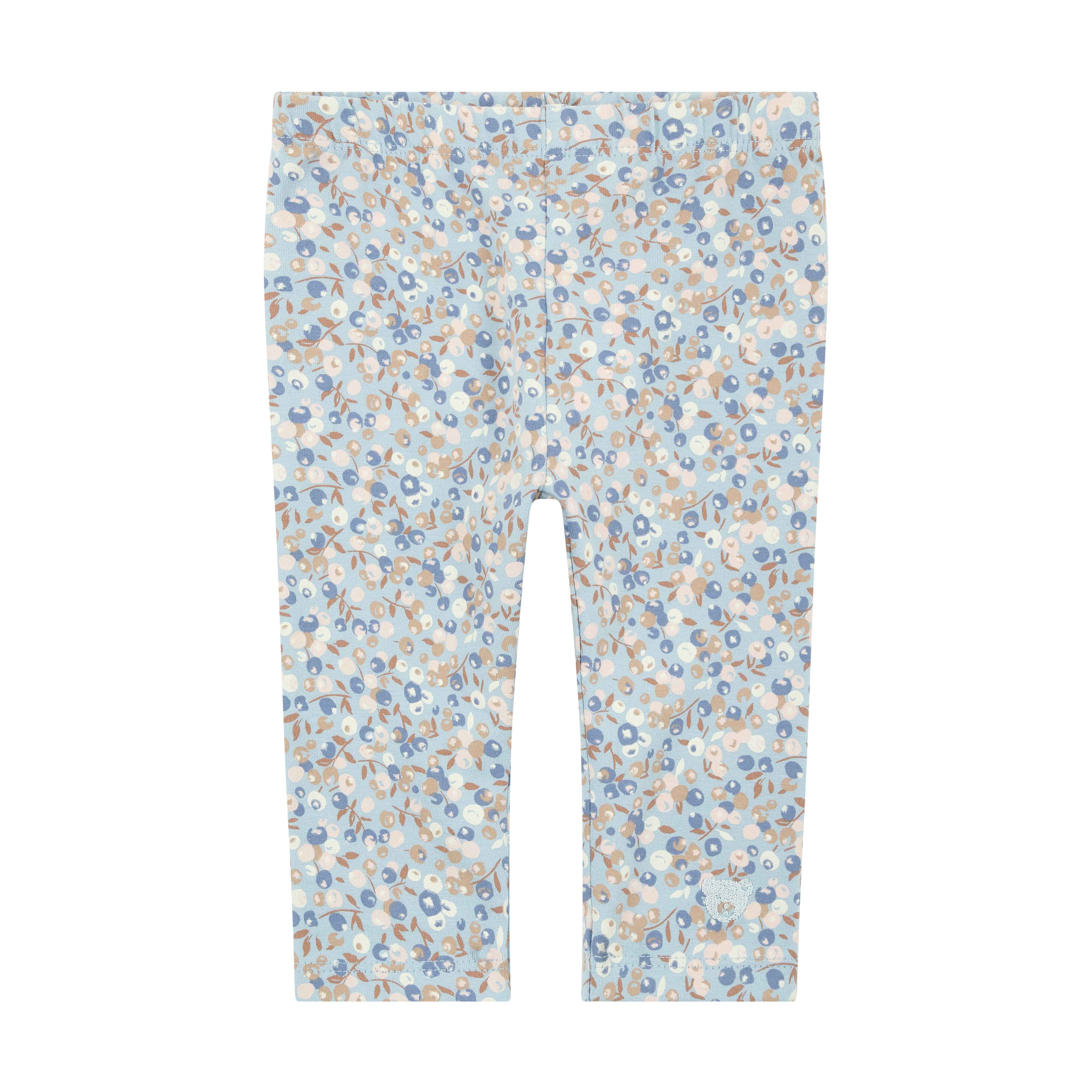Die Steiff Leggings in Hellblau begeistert mit mädchenhaftem Charme und hohem Tragekomfort. Der weiche Single Jersey schmiegt sich sanft an die Haut und macht jede Bewegung mit. Dank des schmalen Schnitts sitzt die Hose bequem und passt sich flexibel an. Ein zartes Allover-Blumenmuster verleiht dem Design eine fröhlich-verspielte Note. Auf dem Hosenbein rundet das gestickte Steiff Teddybärmotiv die Leggings liebevoll ab – ein süßes Basic für Alltag, Spiel und Freizeit.
