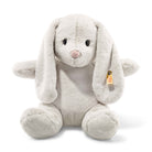 Kinderaugen leuchten, wenn Hoppie Hase von Steiff angehoppelt kommt. Der 38 cm große Hase mit seiner niedlichen rosa Nase und seinen überlangen Ohren ist für Klein und Groß ein liebevoller Begleiter für jeden Tag. Die eingearbeiteten Granulatsäckchen am Gesäß, den Pfoten und den Sohlen sorgen für einen sicheren Halt und laden ein zum Fühlen und Greifen. Der weiche und dichte Plüsch in zartem Hellgrau lädt zum Anschmiegen und Liebhaben ein.