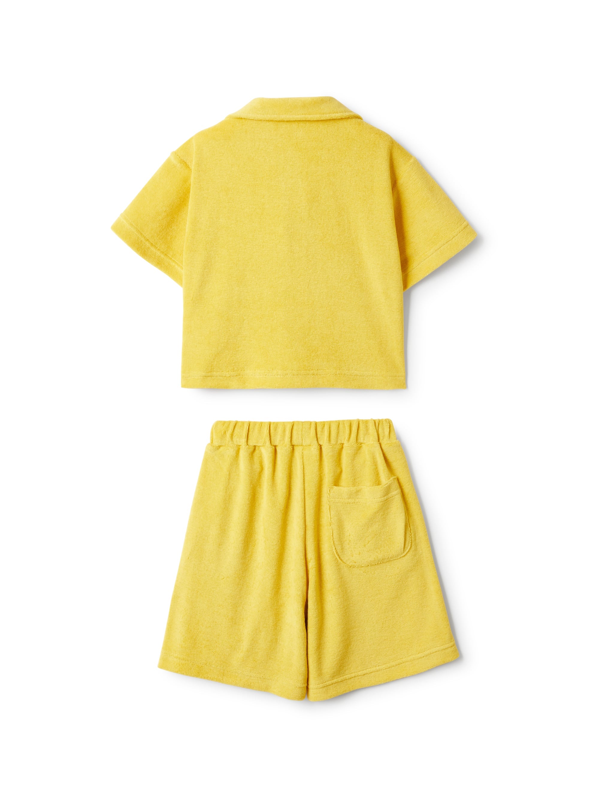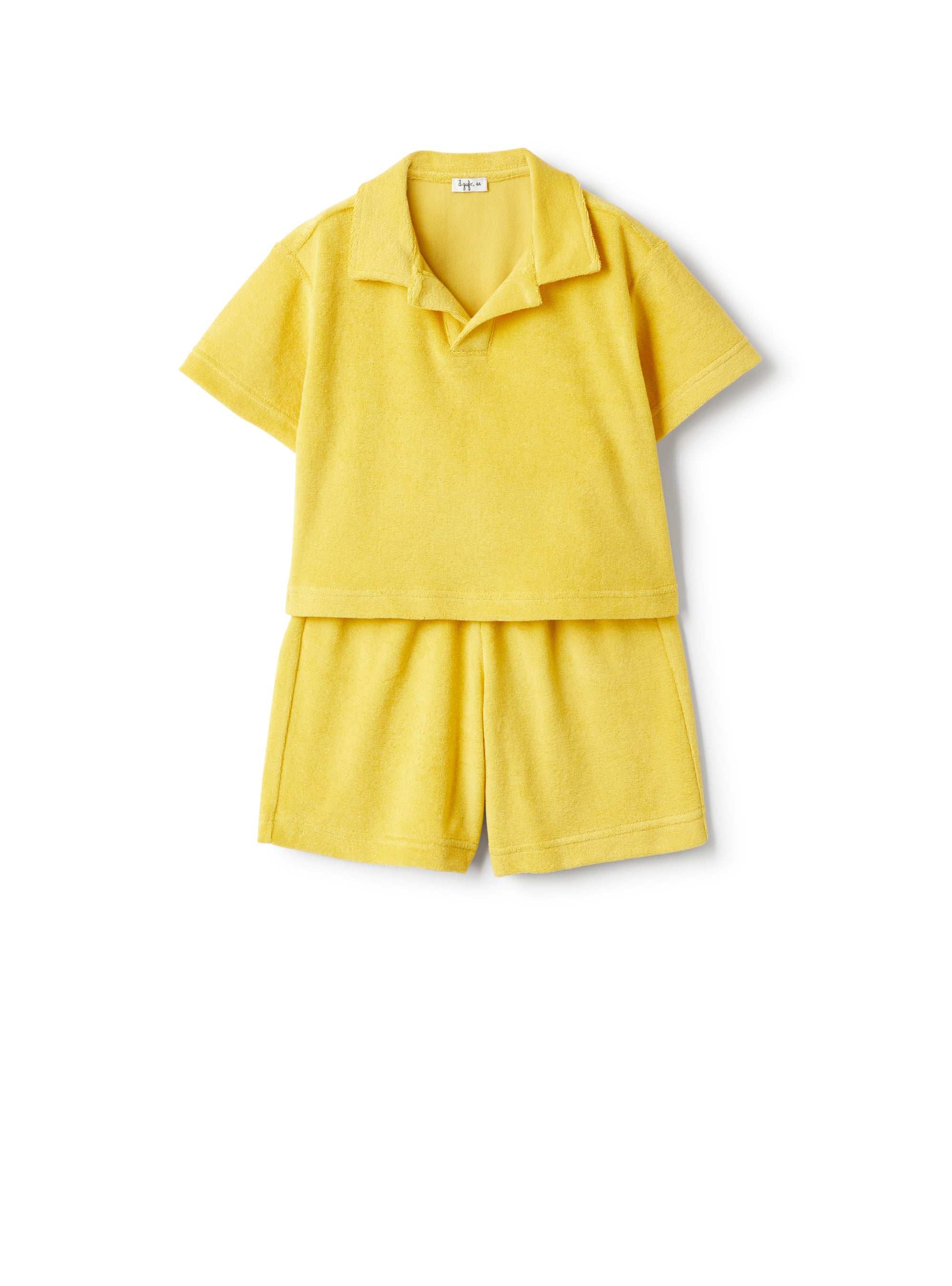 Dieses charmante Set von Il Gufo vereint Komfort und Stil in einem. Es besteht aus einem lässigen Oberteil und passgenauen Shorts, beide mit einem weichen Frotté-Effekt, die perfekt für warme Sommertage sind. Das Oberteil hat kurze Ärmel und einen klassischen Rundhalsausschnitt, während die Shorts einen elastischen Bund und seitliche Taschen bieten.