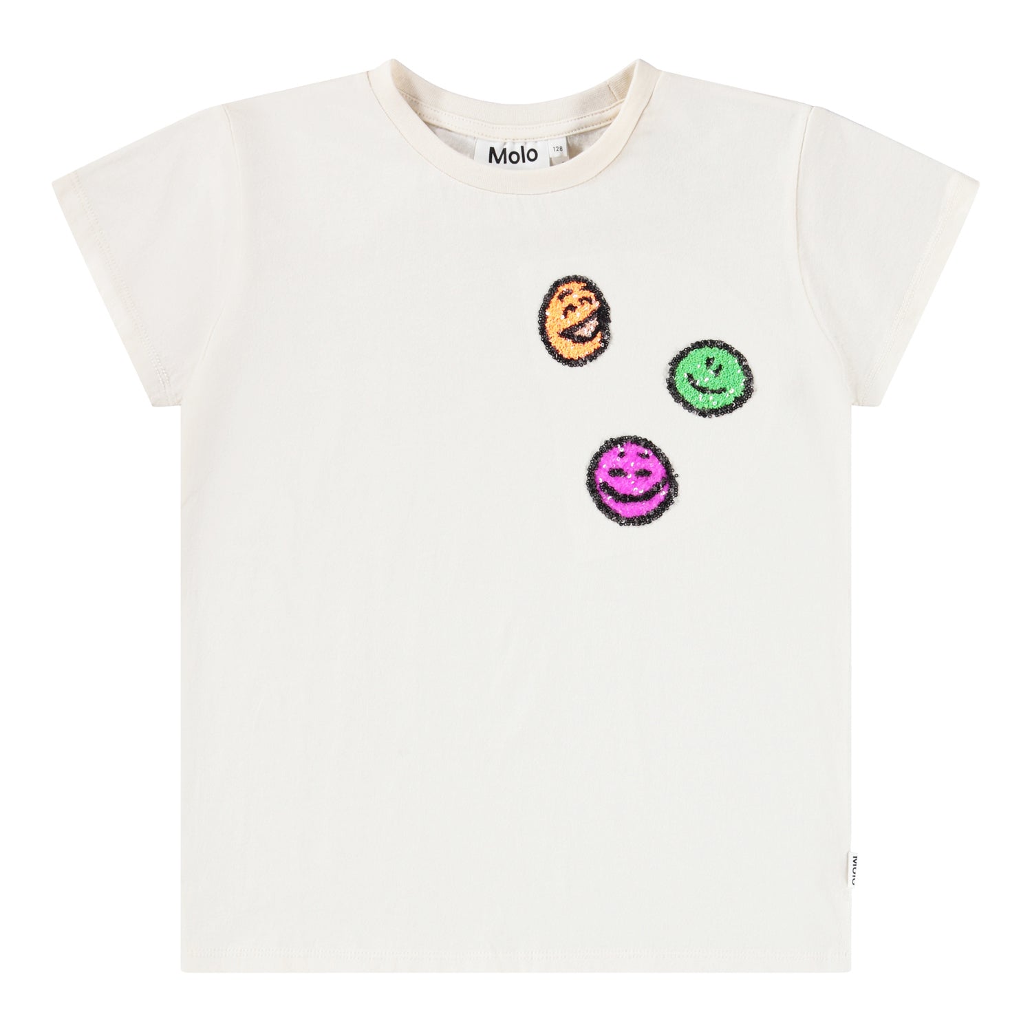 Das Molo Ranva T-Shirt mit glitzernden Pailletten-Smileys bringt Spaß, Stil und gute Laune in jeden Kinderalltag – ein fröhliches Lieblings-Basic!