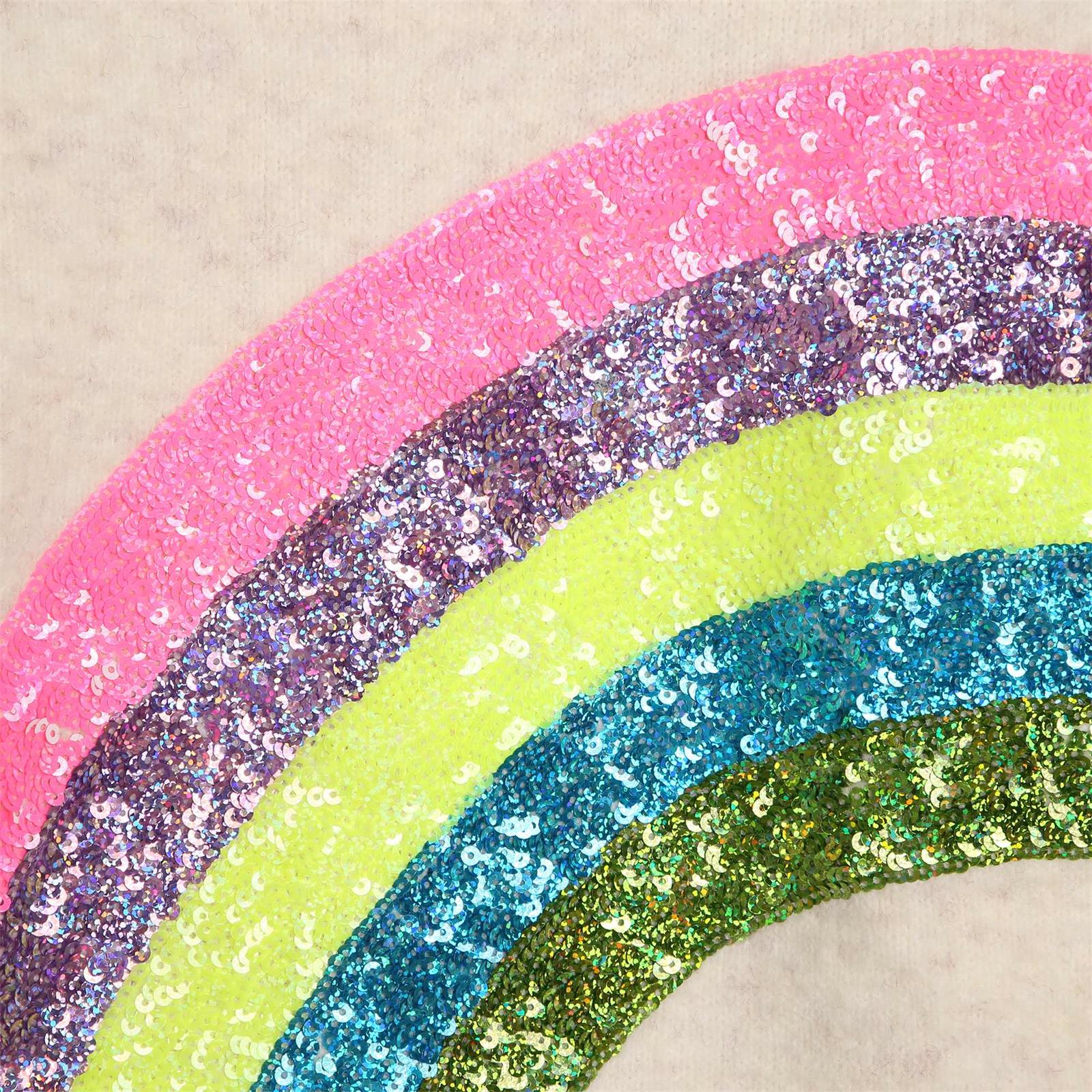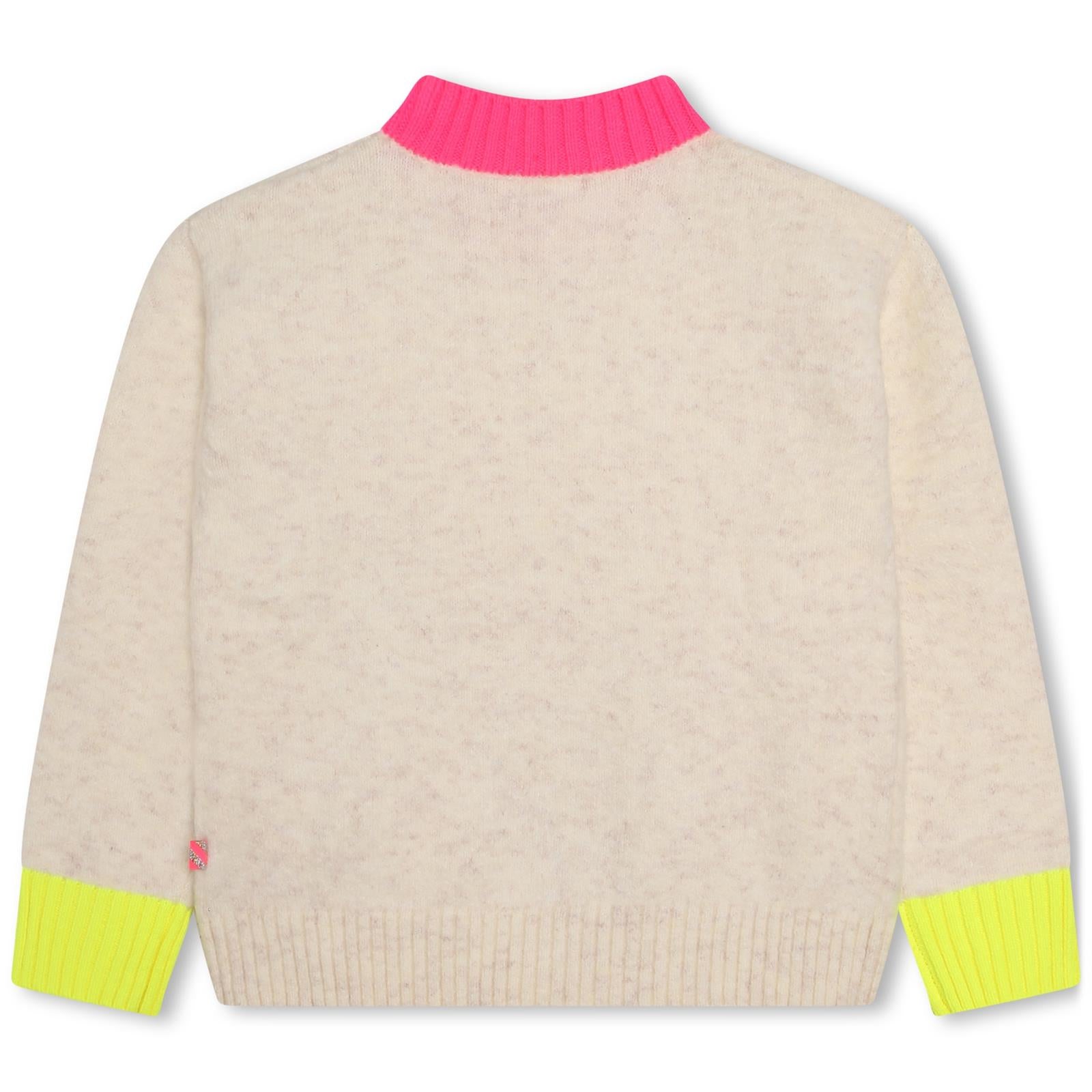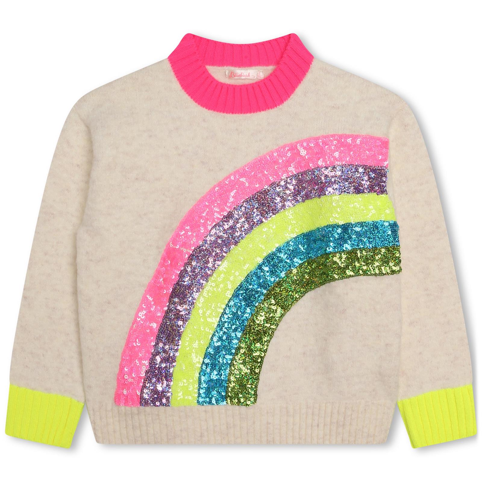 Dieser Strickpullover in Elfenbein von Billieblush mit Regenbogenpailletten und kontrastfarbigen Bündchen ist ein besonderer Hingucker.