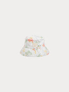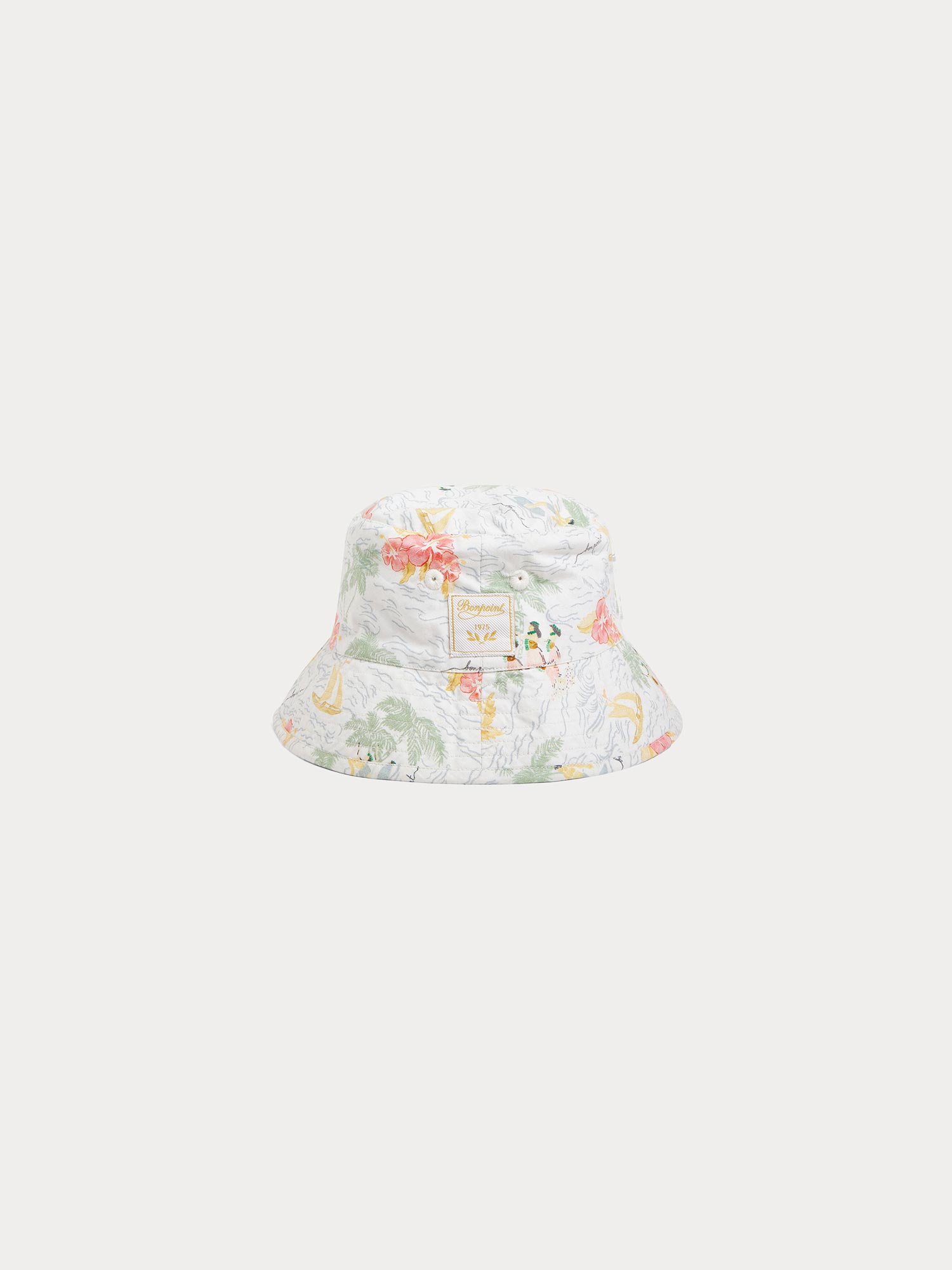 Der Bonpoint - Popeline-Hut Piob für Babys versprüht Urlaubsstimmung mit seinem charmanten Allover-Print aus Surfbrettern und Kokosnüssen. Die breite Krempe ist mit feinen Ziernähten versehen und ein passendes Band rundet das Design ab. Hergestellt aus zertifizierter Bio-Baumwollpopeline.