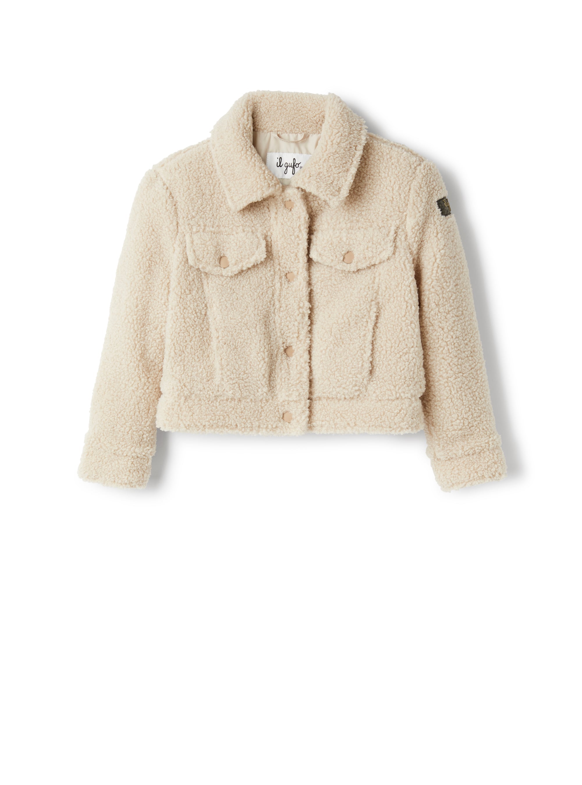 Die Il Gufo Jacke aus Teddyplüsch im Boxy-Schnitt bietet eine umweltfreundliche Wattierung aus Microvaltherm. Sie verfügt über einen praktischen Verschluss vorne, aufgesetzte Taschen sowie Ärmelabschlüsse mit Druckknöpfen. Seitliche Paspeltaschen und ein Innenfutter aus Nylon runden das stilvolle Design ab und sorgen für zusätzlichen Komfort.
