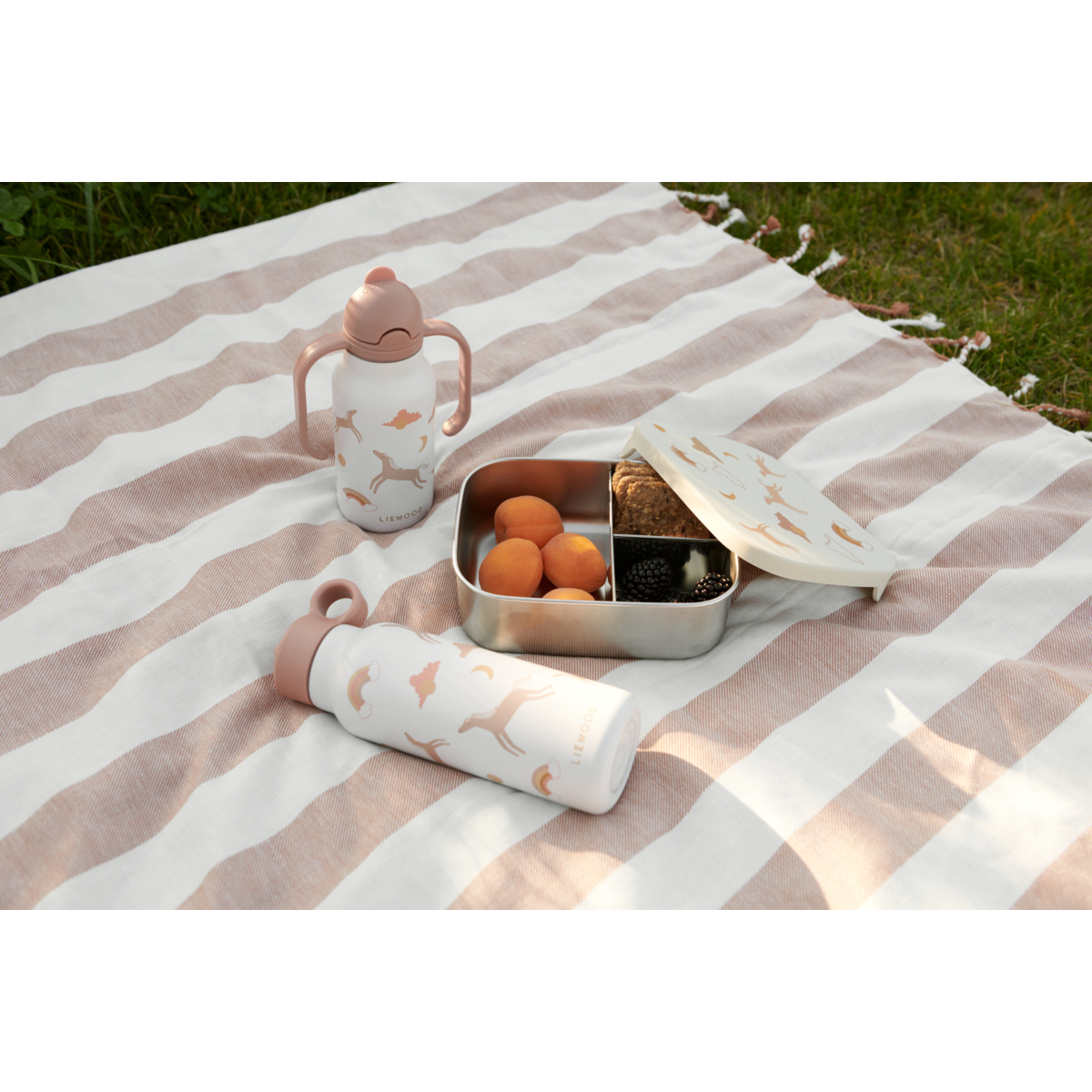 Die LIEWOOD Arthur Lunchbox Dream überzeugt mit nordischem Design, hochwertiger Verarbeitung und kindgerechter Funktionalität – ideal für Schule, Kita oder Ausflüge. Die robuste Basis aus Edelstahl sorgt für langlebige Nutzung, während der flexible Silikon-Deckel mit zartem „Dream“-Print kleine Entdecker inspiriert. Drei separate Fächer ermöglichen eine appetitliche Trennung von Snacks und Hauptmahlzeit. Dank geruchs- und geschmacksneutralem Material bleibt das Essen stets frisch. Leicht zu reinigen und spülmaschinenfest – die perfekte Kombination aus Stil und Alltagstauglichkeit.
