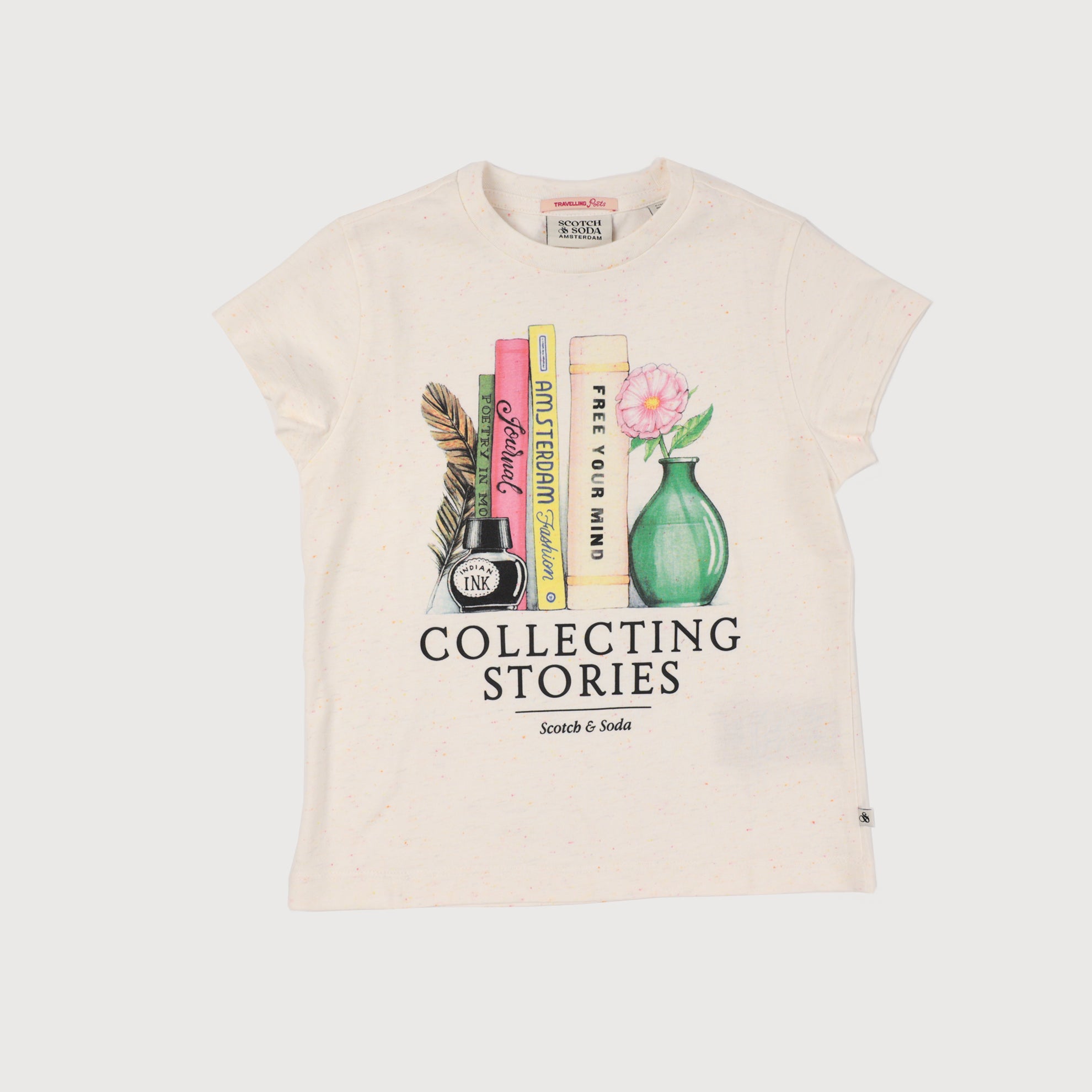 Ein entspannt geschnittenes Scotch & Soda T-Shirt mit Blumenprint auf der Vorderseite in Beige. Perfekt für einen lässigen Look mit einem Hauch von Blumen.